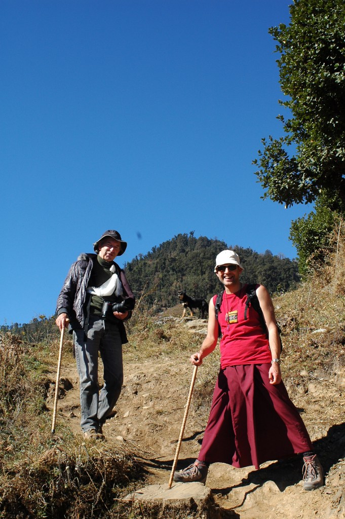 Nature, marche et spiritualité ! En redescendant de l’ermitage de Bakhang au Népal avec l’ami photographe Yann Rollo van de Vyver. (Photo Guillaume Duret)