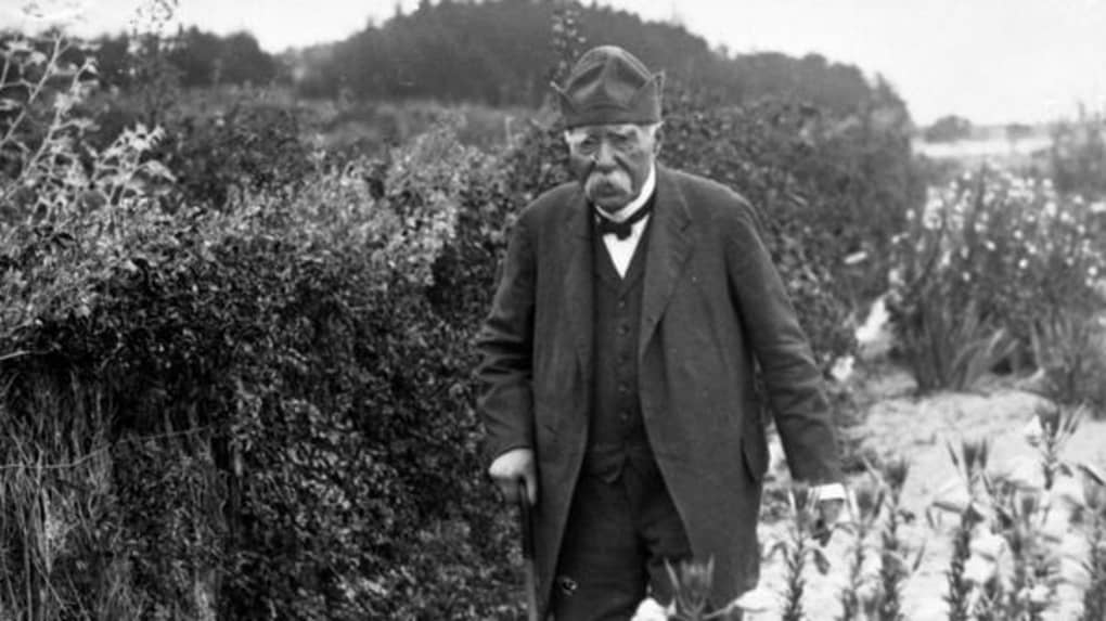Georges Clemenceau (coiffé de son fameux bonnet tibétain) dans son jardin de Saint-Vincent-sur-Jard en Vendée. http://www.maison-de-clemenceau.fr ; https://musee-clemenceau-delattre.fr