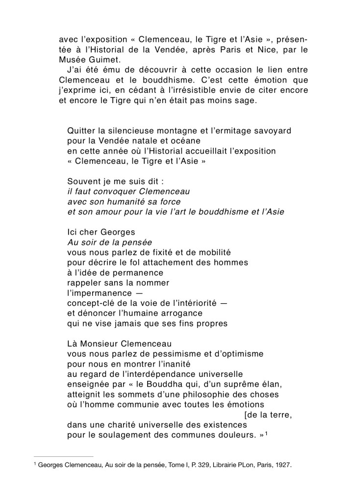 Confucius, Lao Tseu, Moïse, Socrate, Jésus de Nazareth, François d’Assise, sont grands au même titre et de la même manière, sans avoir dépassé le Bouddha qui, d’un suprême élan, atteignit les sommets d’une philosophie des choses où l’homme communie avec toutes les émotions de la terre, dans une charité universelle des existences pour le soulagement des communes douleurs.