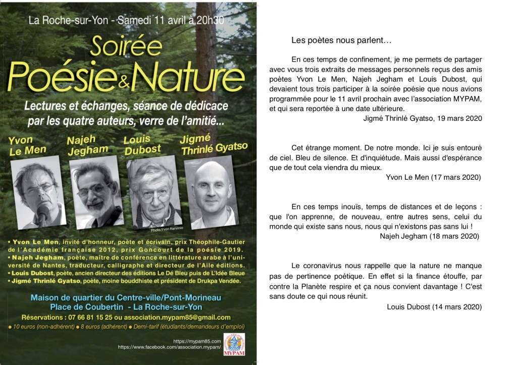Les poètes ont souvent une compréhension très juste et sage des choses et de la vie. Et le Bouddha a dit que tout ce qui est en accord avec son enseignement doit être considéré comme si c’était son enseignement, sans faire de distinction… Car ce qui est vrai, l’est de manière universelle et n’appartient à personne ni à une tradition en particulier !