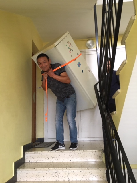 Avec un des résident tétraplégique du centre, doué d’une grande intelligence et très savant, 2017.