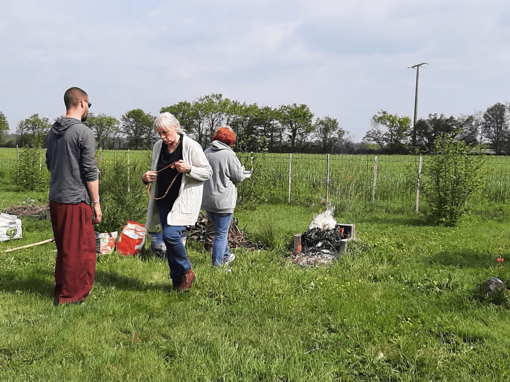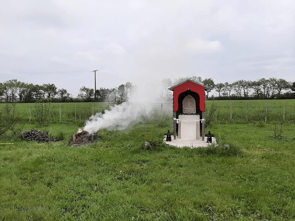 Dimanche 30 avril, Lama Thrinlé a invité les membres de l’association à venir au Jardin de Mila pour la pratique de Riwo Sang Tchöd, rituel d’offrandes de fumées, le matin et la pratique du Yangtik avec Tsok l’après-midi.